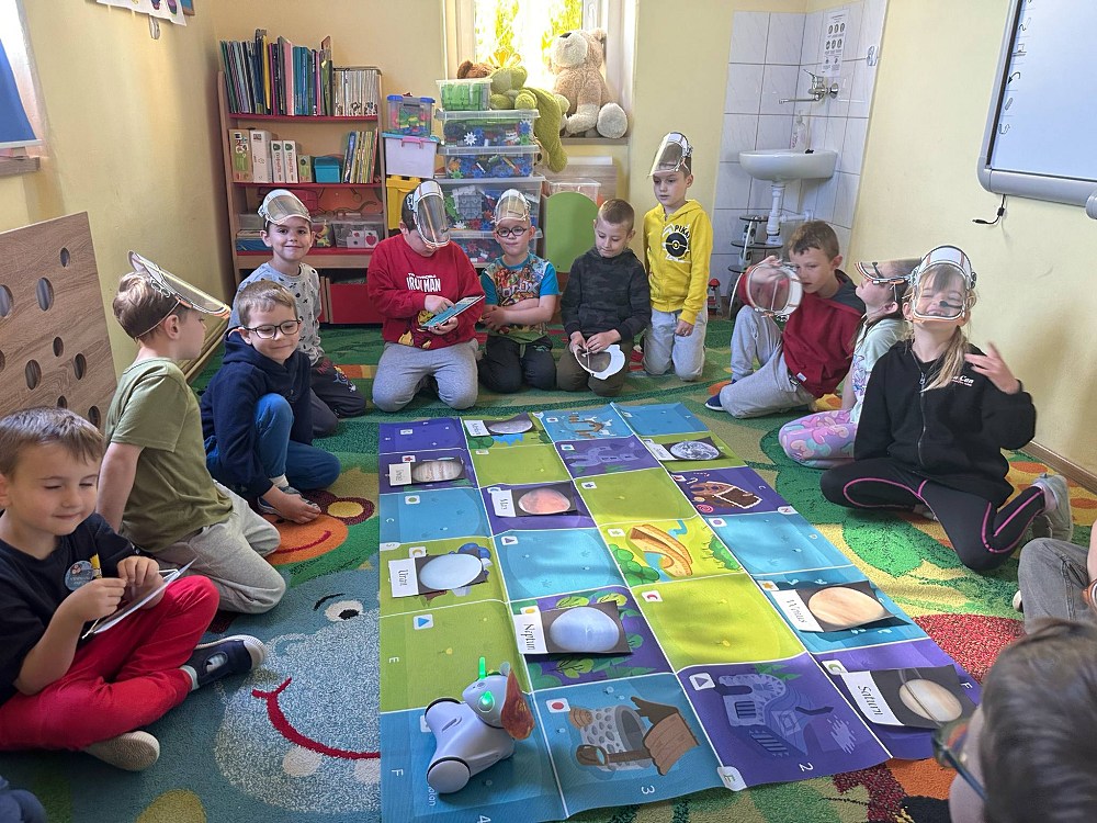 W piątek, 23 maja 2025, jaroszowskie przedszkole, na chwilę stało się kosmiczne. Dzieci miały okazję poznawać nie tylko Układ Słoneczny, ale mogły odbyć także podróż do gwiazdozbioru FANTAZJA i układu KREATYWNOŚĆ.