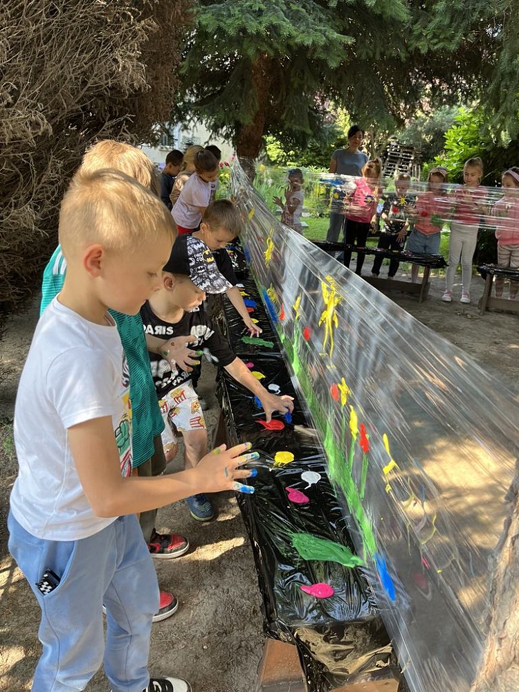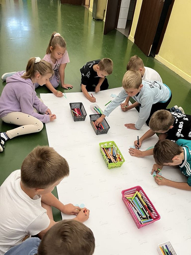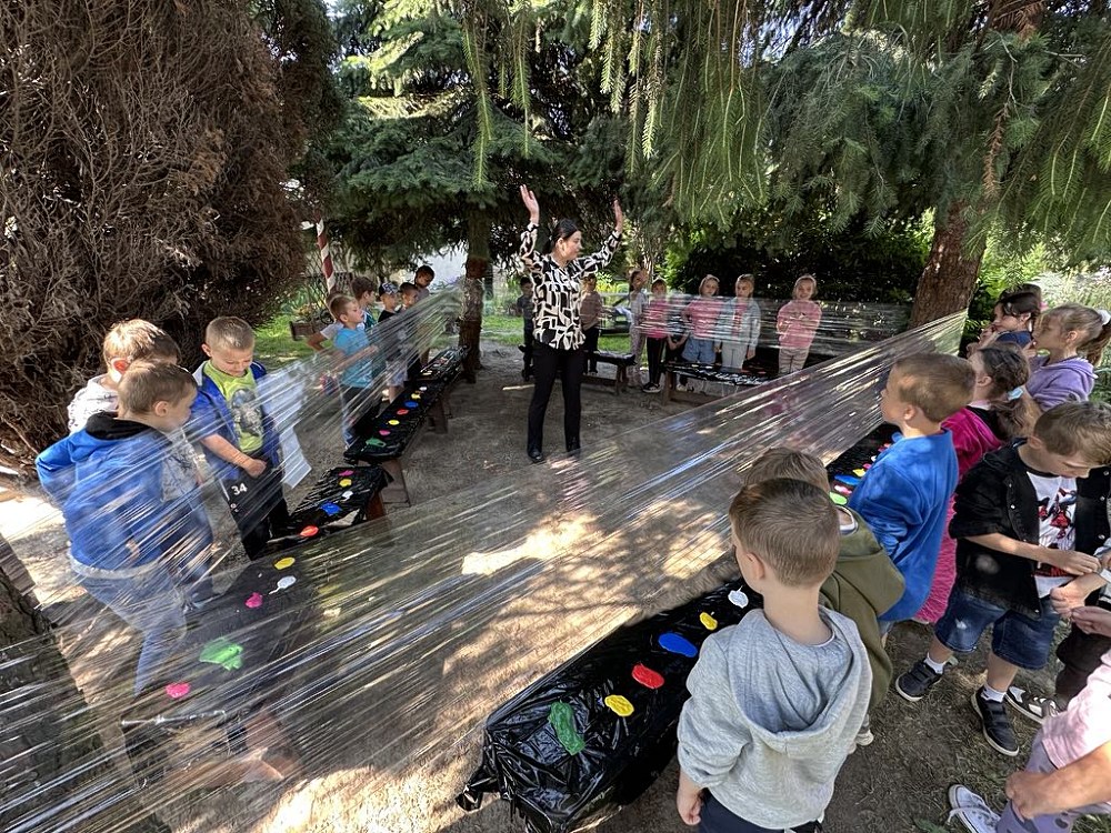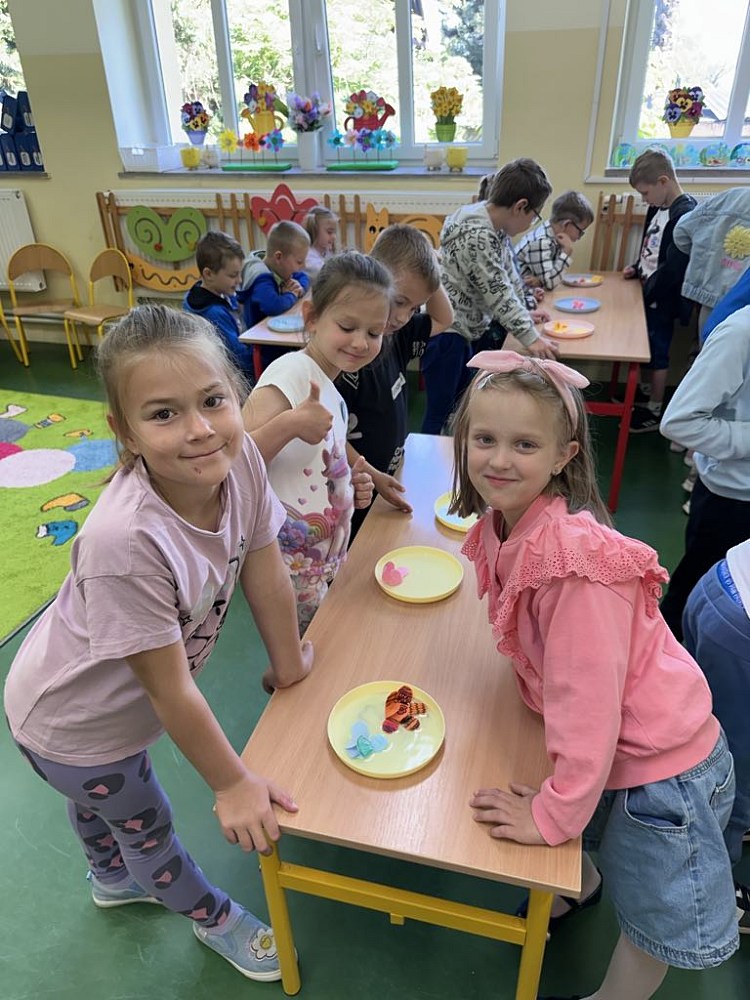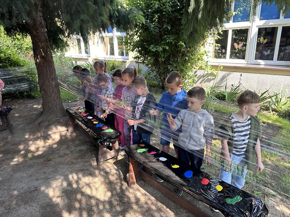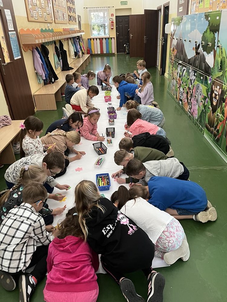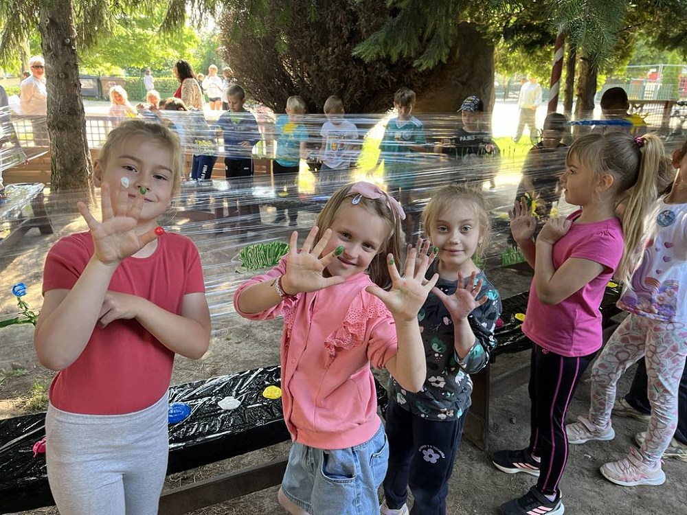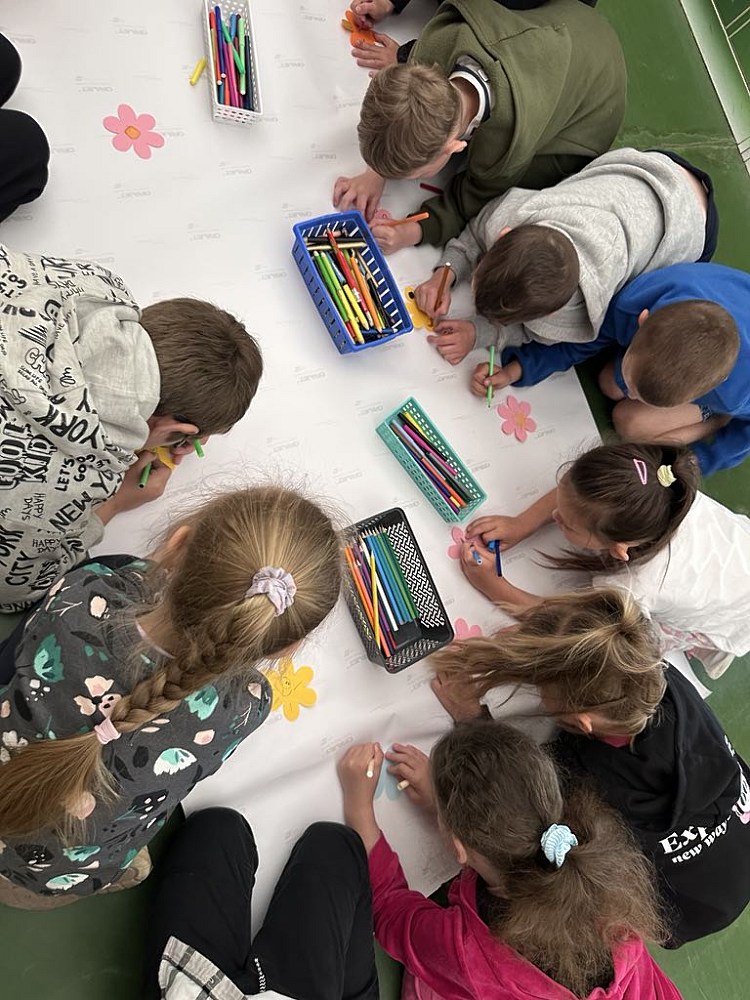 Dzieci miały okazję zintegrować się z rówieśnikami oraz poczuć atmosferę szkolnej sali. Wspólnie rozwiązywały zagadki, pracowały w grupach oraz brały udział w prostych doświadczeniach z wykorzystaniem kwiatów i wody. Zajęcia zakończyły się twórczą aktywnością plastyczną. W Zielonej Klasie przedszkolaki malowały farbami metodą „10 palców”, tworząc barwne, wiosenne łąki.