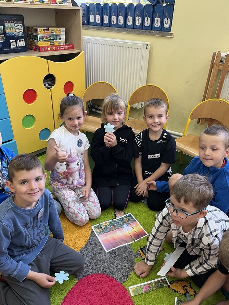 Dnia 12 czerwca 2025 r. przedszkolaki z grupy Pszczółek wzięły udział w zajęciach otwartych zorganizowanych w klasie 1 w ZSP w Jaroszowie. Tematem przewodnim spotkania były „Kwiaty na łące”.