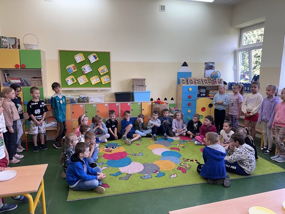Spotkanie przebiegło w miłej i radosnej atmosferze, sprzyjającej nauce poprzez zabawę oraz budowaniu pozytywnych relacji między dziećmi.