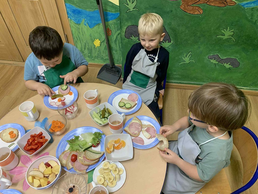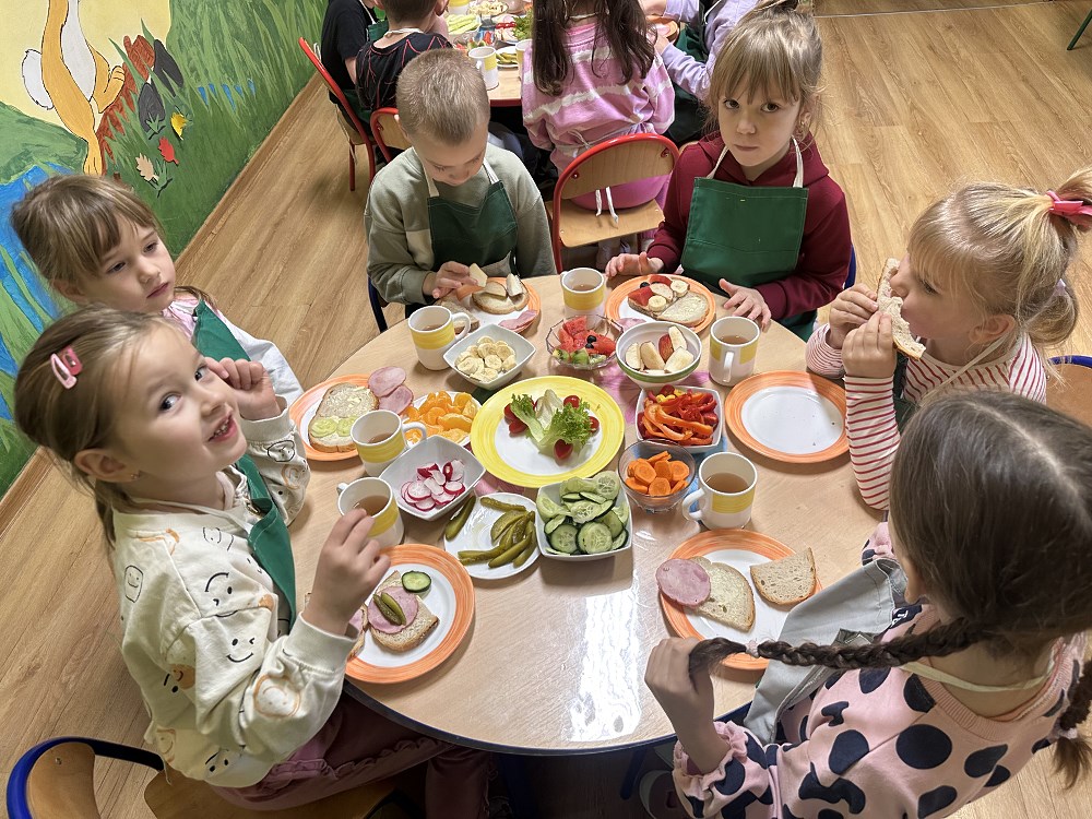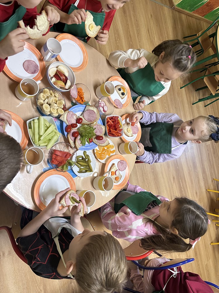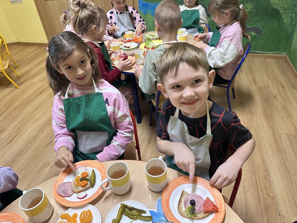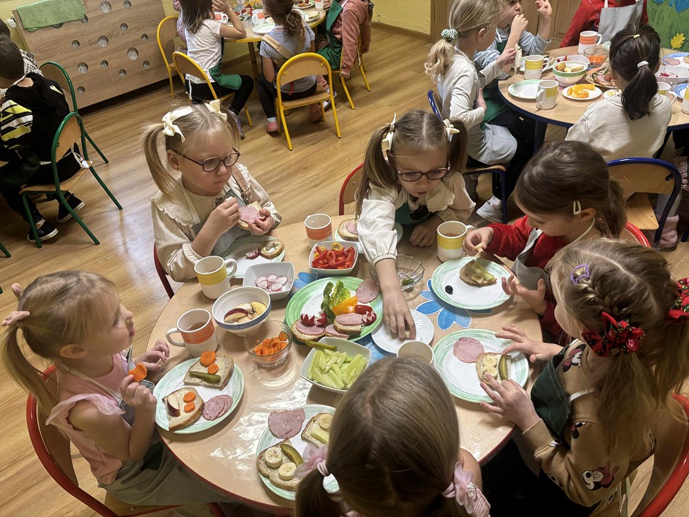 Największą atrakcją była możliwość samodzielnego przygotowania kanapek. Każde dziecko mogło skomponować własne, kolorowe i pełne witamin śniadanie. Na stołach pojawiły się prawdziwe kulinarne dzieła sztuki – kanapki w kształcie zwierzątek, buźki z warzyw i owoców.