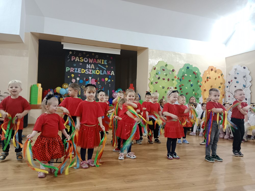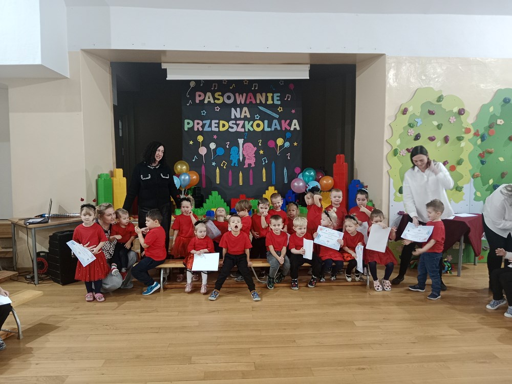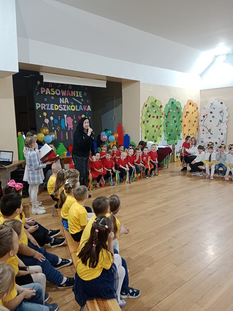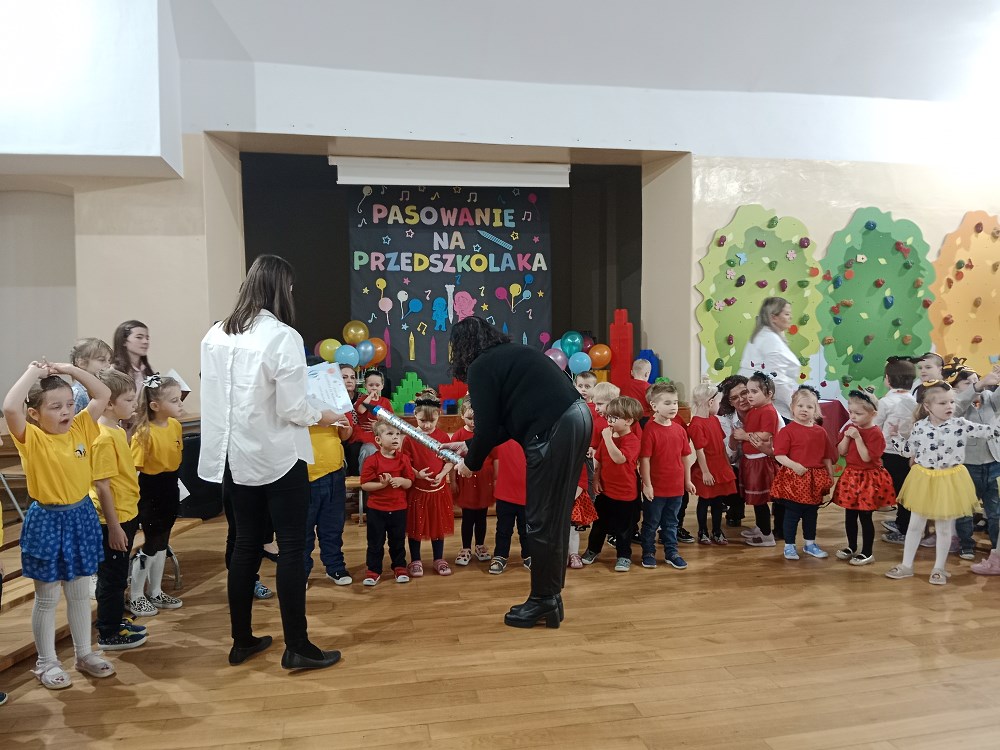 Po zakończonym pokazie, dyrektor ZSP w Jaroszowie Beata Jankiewicz dokonała uroczystego pasowania każdego przedszkolaka, co było niezwykle doniosłym momentem dla wszystkich obecnych. Na zakończenie ceremonii, każde dziecko otrzymało dyplom, który upamiętniał ten ważny dzień w ich przedszkolnym życiu.