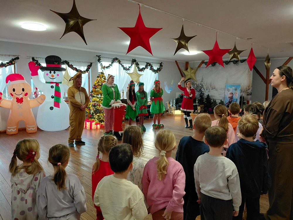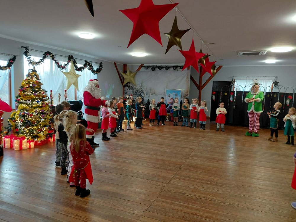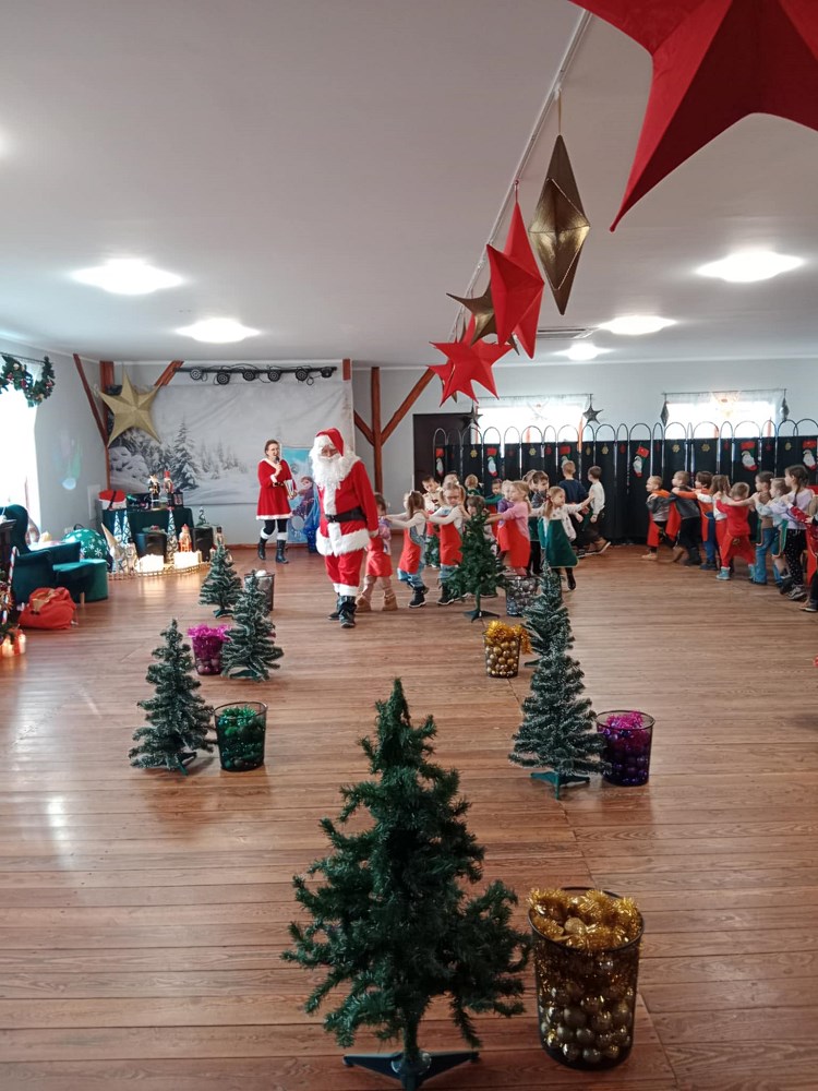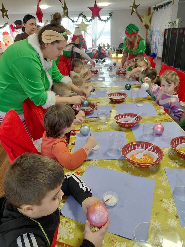 Warsztaty rozpoczęły się od powitania dzieci przez elfa, następnie przedszkolaki przystąpiły do napisania listu do Świętego Mikołaja. Po tym zadaniu przyszły kolejne takie jak: ozdabianie pierników, dekorowanie bombki i ozdób gipsowych, wspólne ubieranie choinki, zabawy przy muzyce z elfami. Najważniejszym i najbardziej oczekiwanym punktem było spotkanie i zabawy ze Świętym Mikołajem. Spotkanie to wywołało wiele radości i uśmiechów na twarzach dzieci. Dzieci wróciły zadowolone, z pięknymi ozdobami świątecznymi, które zabrały do domu.