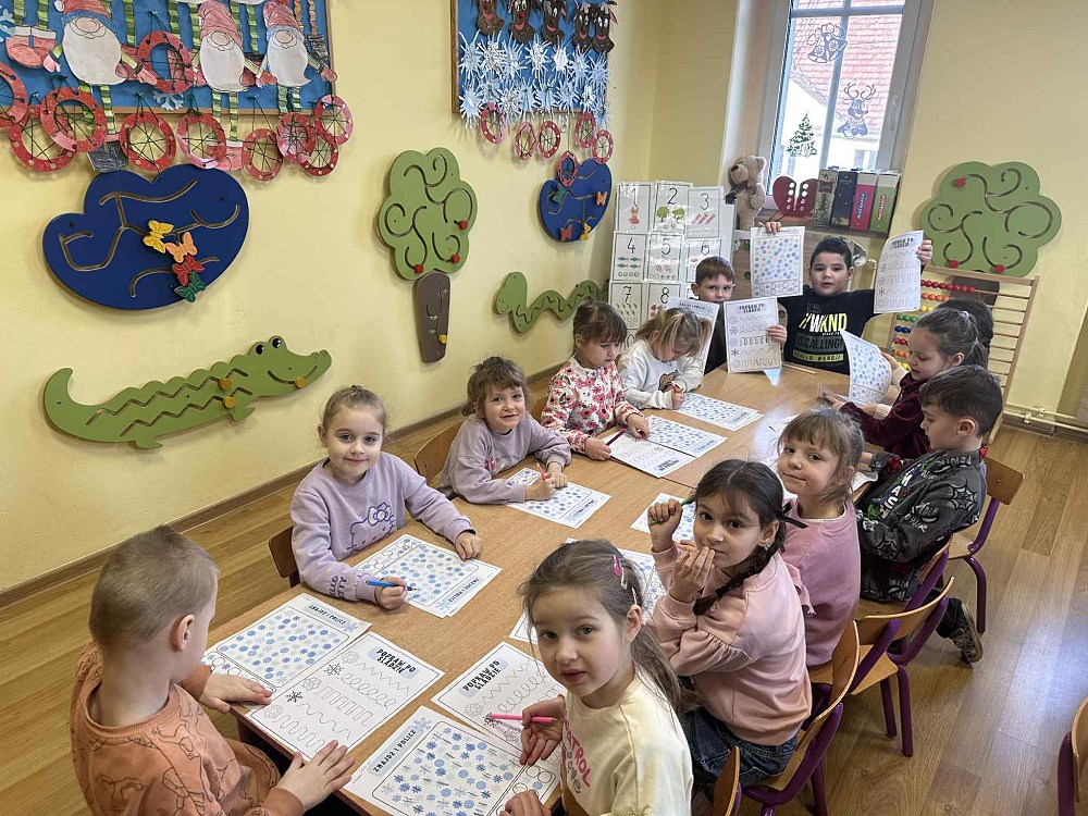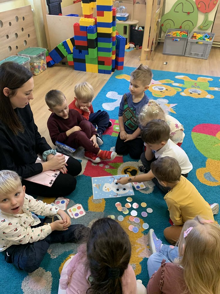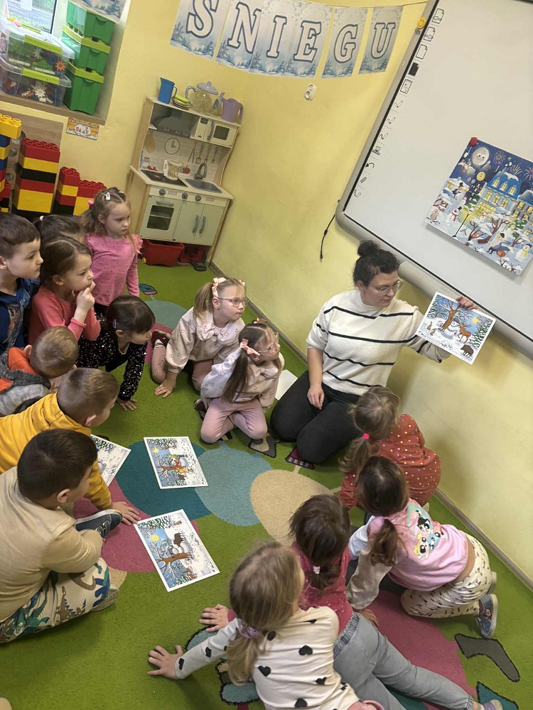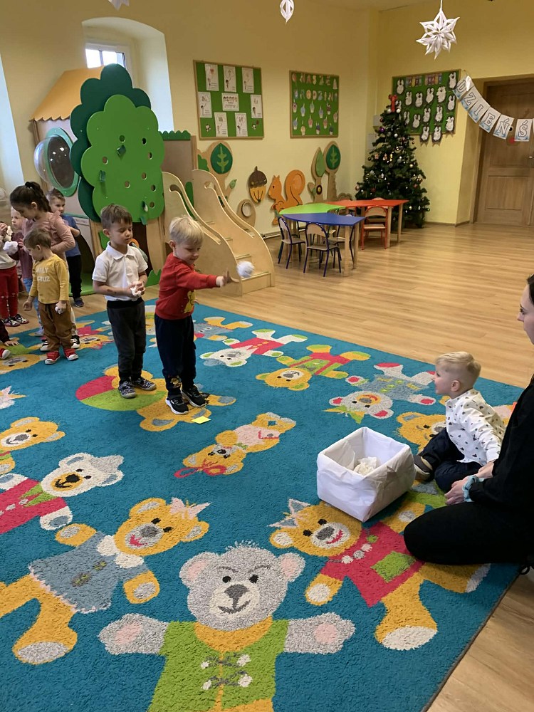 Na zajęciach dzieci próbowały odpowiedzieć na pytania: co to jest śnieg?, z czego powstają śnieżynki?, czy śnieg jest czysty?, dlaczego potrzebny jest śnieg?. Dzieciom zostały przypomniane zasady zapewniajace bezpieczeństwo zabaw na śniegu. Nie zabrakło również zabaw plastycznych i sensorycznych tj.: malowanie palcami, lepienie z plasteliny oraz lepienie ze sztucznego śniegu zrobionego w przedszkolu. Choć w tym dniu za okami nie było śniegu, to w przedszkolu panowała prawdziwie zimowa aura.
