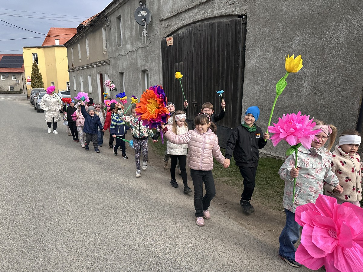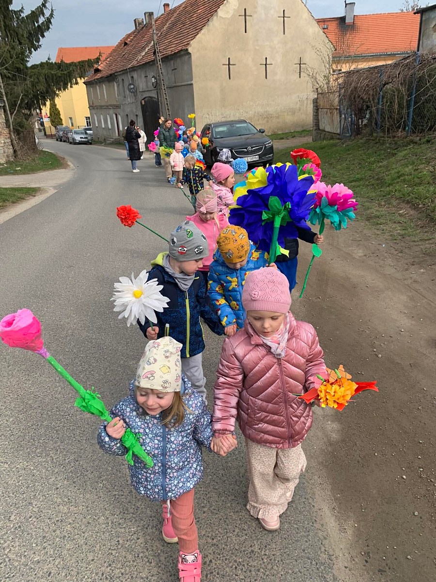 Tego dnia dzieci wyruszyły na spacer po najbliższej okolicy. W dłoniach trzymały kolorowe, wiosenne kwiaty, a w wokół rozbrzmiewały radosne piosenki. Spacer był doskonałą okazją do obserwowania zmian zachodzących w przyrodzie oraz do wspólnego spędzenia czasu na świeżym powietrzu.