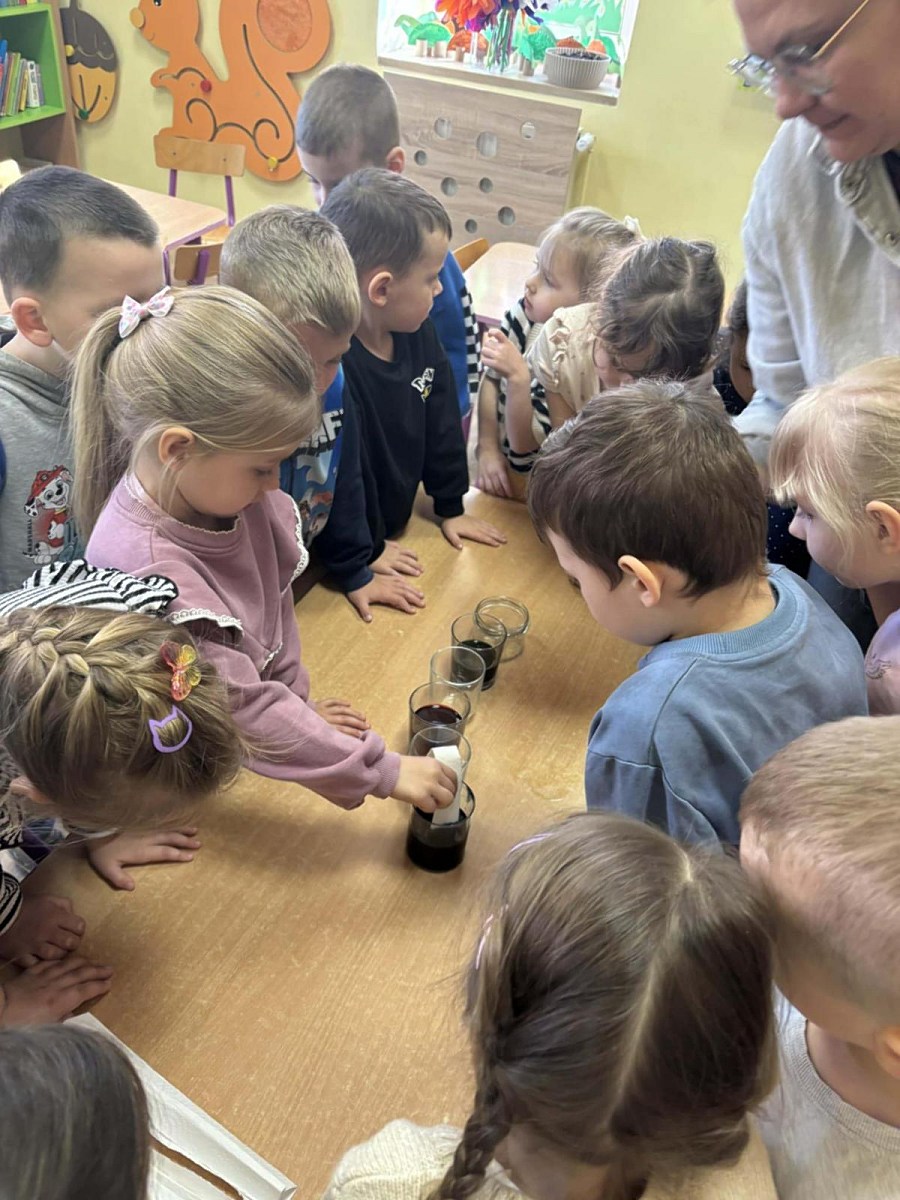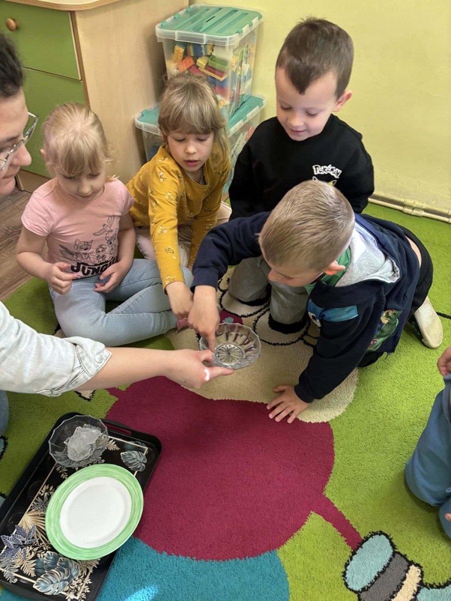 Największą atrakcją dla dzieci były eksperymenty z wodą. Przedszkolaki miały okazję samodzielnie obserwować różne zjawiska, takie jak rozpuszczanie się substancji w wodzie czy mieszanie kolorów. Zajęcia te wzbudziły wiele radości i ciekawości, a także pozwoliły dzieciom lepiej zrozumieć właściwości wody.